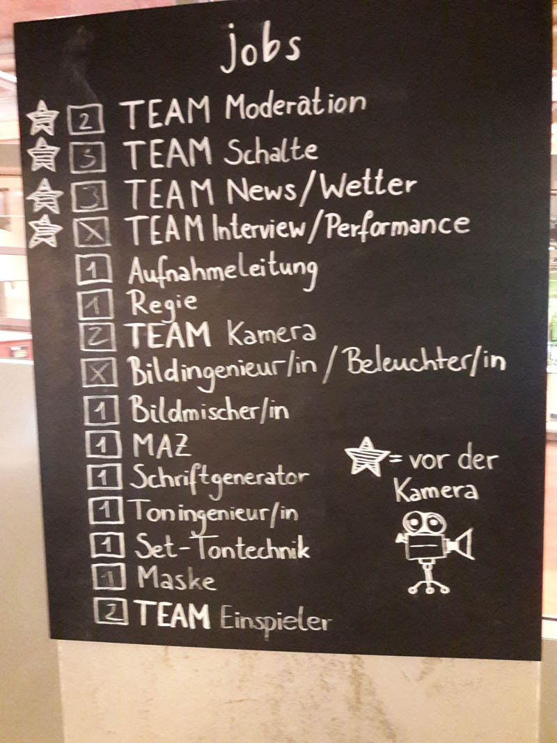 Die Klasse 8a war am 4. Mai im WDR STUDIO ZWEI und erlebte viel Neues. Dreieinhalb Stunden konzentrierte Arbeit in Teams und mit großem Spaß lagen vor ihnen. Dabei lernten die Schülerinnen und Schüler viele Berufsbilder kennen. Am Ende stand eine eigene kleine Sendung der 8a, in der es um Nachrichten und Informationen vor und hinter der Kamera ging – ohne Anspruch auf Perfektion und einfach nur mit Spass an der Arbeit mit Medien.