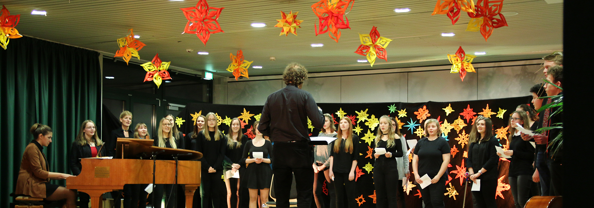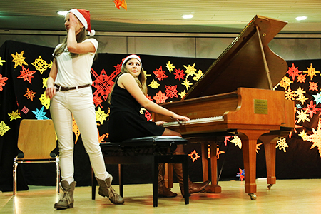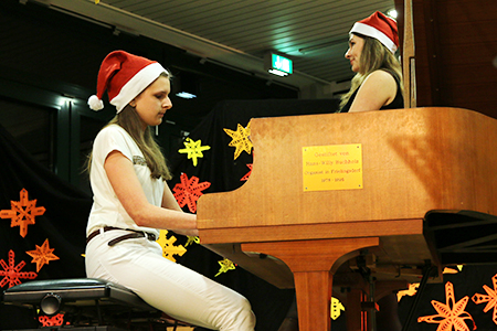 Am 21.12.2016 fand im Forum das traditionelle Weihnachtskonzert des GymLi statt. SolistInnen und kleine Ensembles präsentierten in weihnachtlich-ruhiger Atmosphäre Musik aus Barock, Klassik, Romantik und Moderne. Der musikalische Bogen spannte sich von Bach, Händel und Pachelbel über Schubert, Beethoven und Mussorgsky bis hin zu Film- und Popmusik. Die SchülerInnen musizierten am Klavier, mit verschiedenen Blasinstrumenten und Schlagzeug, auf dem Cello, singend und mit der Gitarre. Auch der Chor kam zum Einsatz und bat am Schluss um gesangliche Unterstützung durch das Publikum – damit alle weihnachtlich beseelt in die Ferien starten konnten.